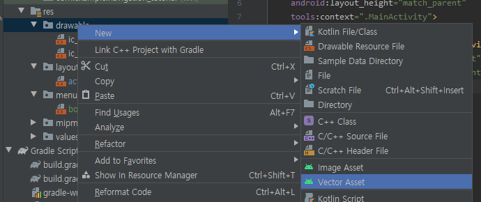 res > 마우스 우측버튼 클릭 > New > Vector Asset