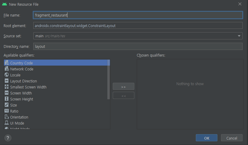 layout 마우스 우측버튼 클릭 > Layout Resource File