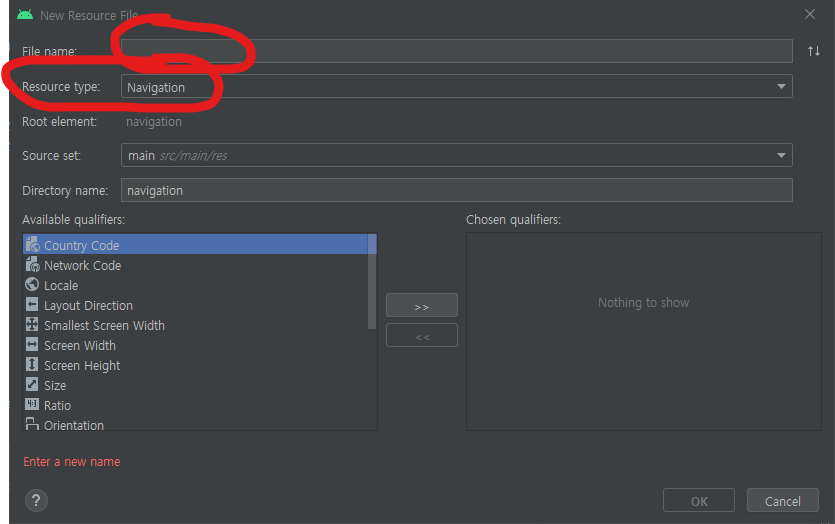 file name(nav_graph.xml) 적고, navgation 선택 후 OK